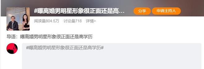 11月14日,一位男明星闹离婚的瓜登上了热搜,引发网友关注和热议。