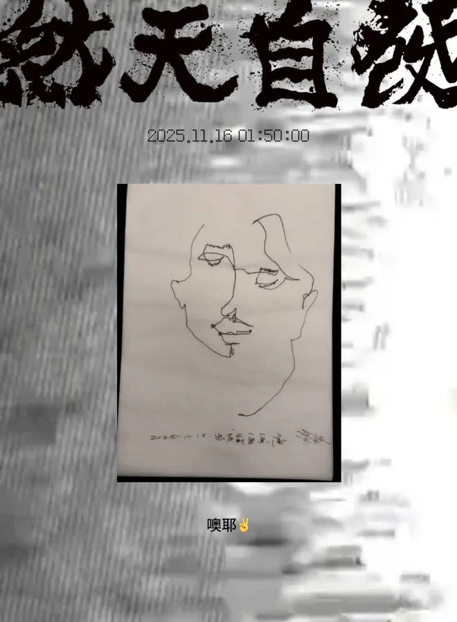 今天(11月16日)凌晨1点50分,易烊千玺在自己的小网站更新“噢耶”,配图是“2025.11.15出发前自画像 紧张”,被划掉的“紧张”二字特别醒目。