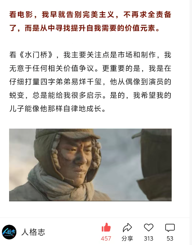 当然,我指的并不是要让自己儿子们像他那样去走艺人道路。我的意思只是,在人格和行事上,年轻人应该活着易烊千玺的沉静和坚实。