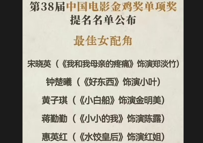 只能说内娱也好,海外也罢,很多奖项都是分猪肉,资本在幕后提前敲定,钟楚曦前几天就知道这个结果了,而且她背后确实有一定的人脉,这次纯粹就是她演得还行,后台找机会发力了一把,就助力她金鸡拿奖了。