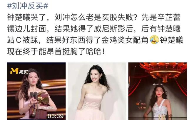 钟楚曦金鸡奖获奖引热议,拉踩刘冲成焦点
