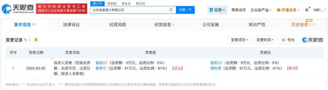 天眼查App显示,曾轶可名下共关联3家企业,其中2家为存续状态,分别为北京虚拟她国际文化传媒有限公司、北京乐在其中文化发展有限公司,曾轶可在上述公司担任监事等职务。此外,今年3月,曾轶可刚退出北京她愈唱片有限公司股东行列,退出前持股91%。