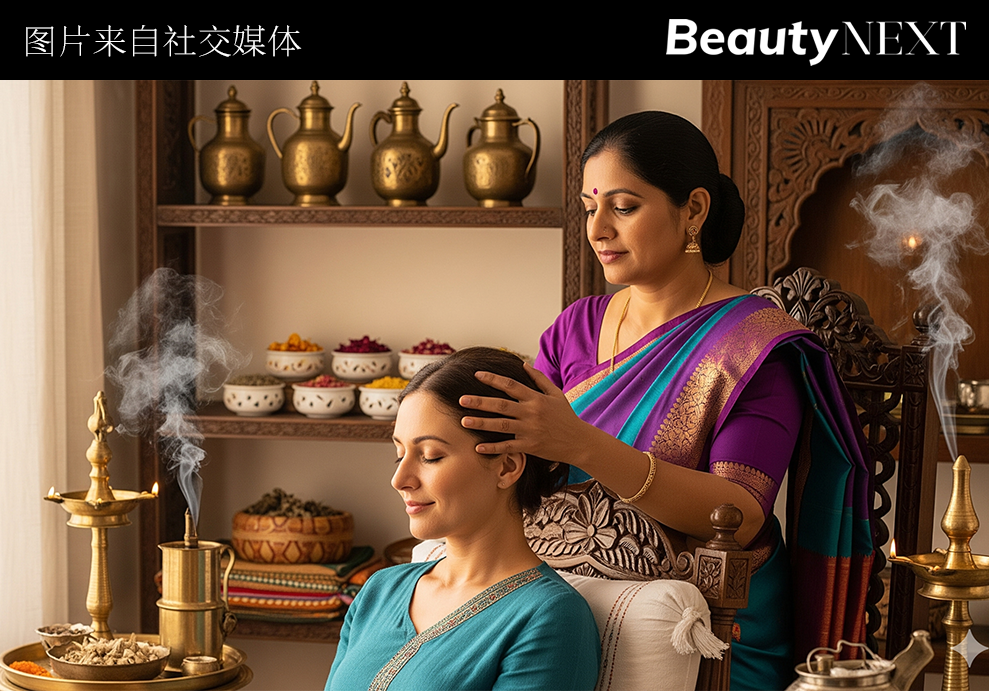 从头皮按摩到沐浴冥想,从香氛叠喷到夜间修复节律,这些曾经被视为“情绪附加值”的仪式护理,正从全球各地的传统文化中汲取养分,将古老的智慧——从印度的阿育吠陀到东方的理容之道——重新翻译成现代美妆语言,开辟出一条超越成分内卷的增长新通路。