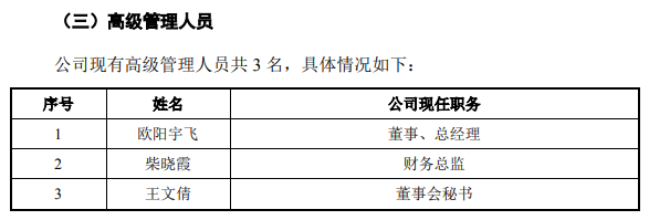 根据裕太微招股书,申请上市当初公司有高管人员三位,分别为董事、总经理欧阳宇飞、财务总监柴晓霞及董事会秘书王文倩。目前王文倩被解聘,欧阳宇飞也于裕太微上市后9个月,即2023年11月因个人原因辞去了公司总经理职务,仅有柴晓霞仍担任财务总监。