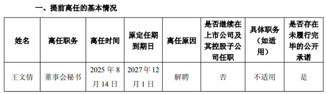 而王文倩被解聘此举实属突然,资料显示,其原定任期到期日为2027年12月1日,距今还有两年多。公告显示,其离任后无任职。