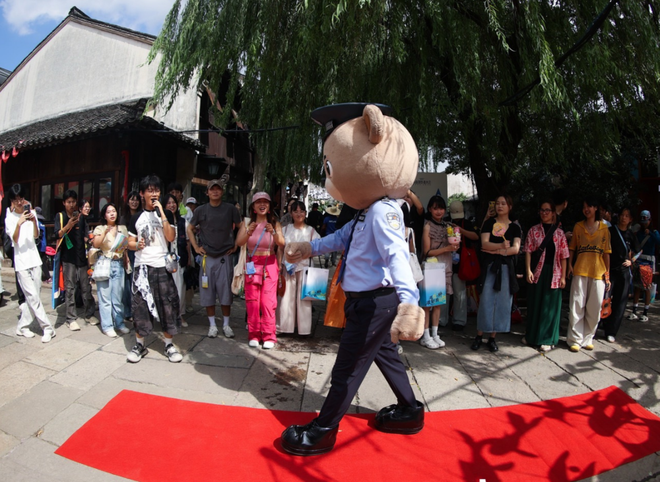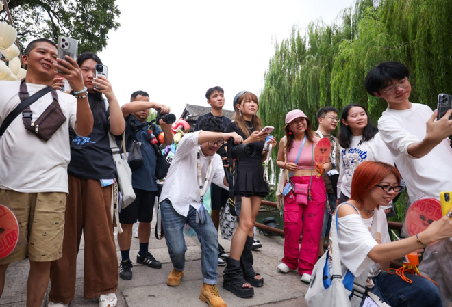 赶在国庆节前夕,抖音将海宁盐官古城装扮成创作者线下交流会,放眼望去,满街都是惹眼的网络潮人,有人悠然开启直播打卡,有人与粉丝热情合影,还有人不断轮换角度拍摄素材,热闹氛围弥漫古城。
