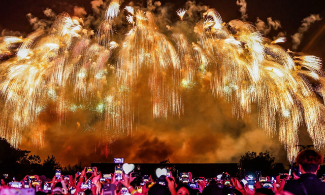夜幕降临,古城中的演唱会、红毯表演、开放麦及烟花秀相继上演,即便绵绵细雨与拂面凉风催人加快脚步,但水雾氤氲的古道上,仍有行人三五成群驻足。立于雨中,仿佛能听见时间也随之哗哗作响,为这场线下交流会添了几分诗意。