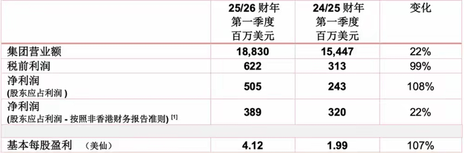 近期,联想财报显示,在2025/26财年第一财季,联想营收同比增长22%至188亿美元(约合人民币1362亿元),创下历史同期最高纪录;按香港财务报告准则计,净利润同比增长108%至5.05亿美元(约合人民币36.6亿元)。按照非香港财务报告准则计算,净利润同比增长22%至3.89亿美元(约合28.2亿人民币),已调整因认股权证产生的非现金公允价值收益。
