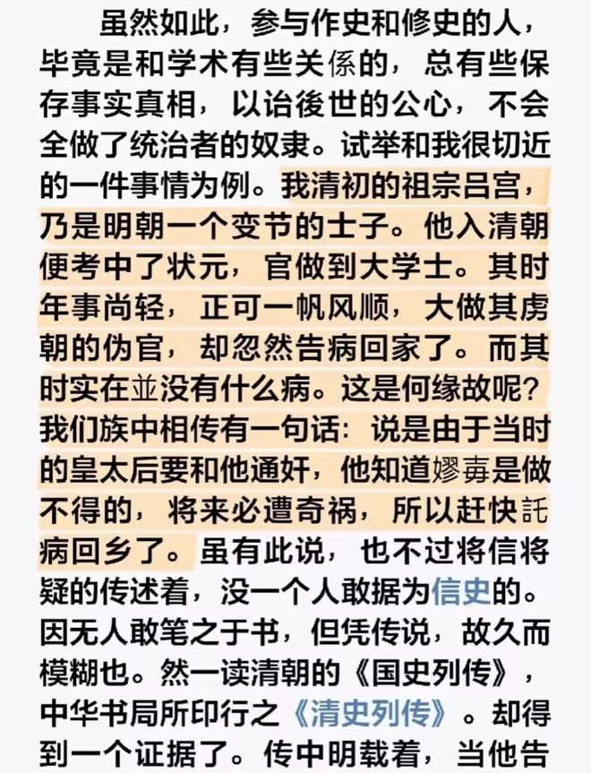 最近又有一个更劲爆的瓜传出来了,近代著名的历史学家吕思勉的一段记录被翻了出来,他说他们家祖上叫吕宫,是顺治年间的状元,在清朝混到权力圈子顶层的那种,很受顺治帝的倚重。