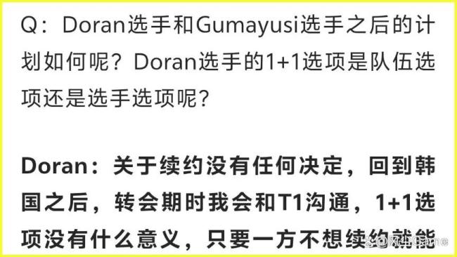 KT全员续约,明年原班人马再战一年。T1大概率也是原班阵容,小吕布表示会以去年续约的心态参加今年的转会期,多兰则表示回到韩国后会与T1沟通,但1+1选项没有意义,只要一方不想续约就能结束。多兰希望留在T1,只要T1愿意续,他就会留队。DK战队方面,京东的Peyz选手正在接触DK和NS,有可能加入DK。