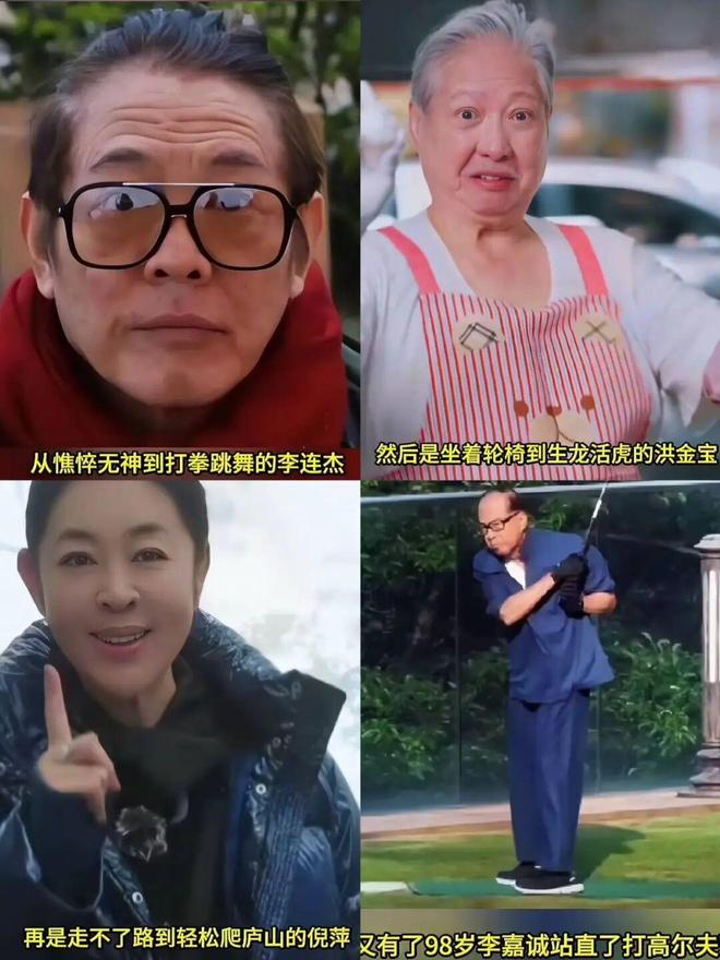 李连杰之前疯叔说过了,有瓜友关注倪萍的话,应该知道她此前是走不了路的,最近她居然可以轻松爬庐山不喘气了,洪金宝过去是坐轮椅出行,如今也都生龙活虎了,还有98岁的李嘉诚,从他站直了打高尔夫球的姿态来看,老头挺有劲的哈。