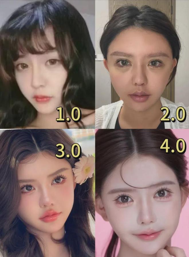 从早期的“网红脸1.0时期”,欧式大双、高山跟、尖下巴、磨平的下颌角…几乎是那时整容的统一模版。