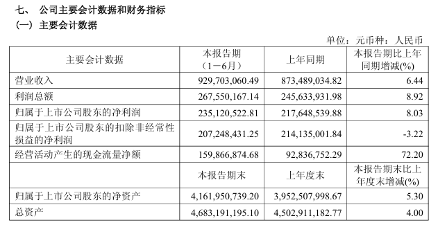 其中第二季度,公司营业收入为4.81亿元,同比下降4.2%;归母净利润为1.27亿元,同比上升7.9%;扣非归母净利润为1.03亿元,同比下降21.0%;EPS为0.3054元。