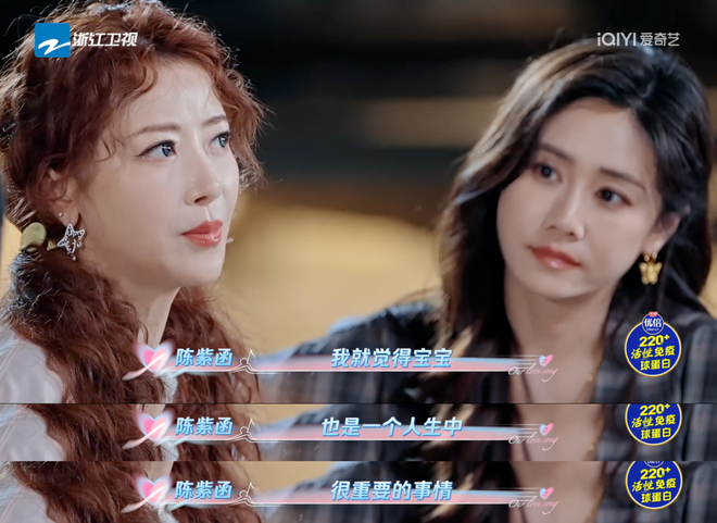 另一档真人秀《天声一对》里,陈乔恩更是被“贴脸开大”,当她表明不想生孩子的立场后,嘉宾杜若溪直接开劝:“亲爱的,一定要有个小朋友”,甚至播放了女儿的撒娇语音。