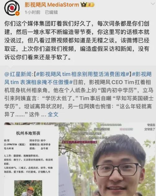 最近,影视飓风创始人Tim相亲经历,引发关注,多个话题冲上热搜,比如Tim相亲被嫌弃学历低。