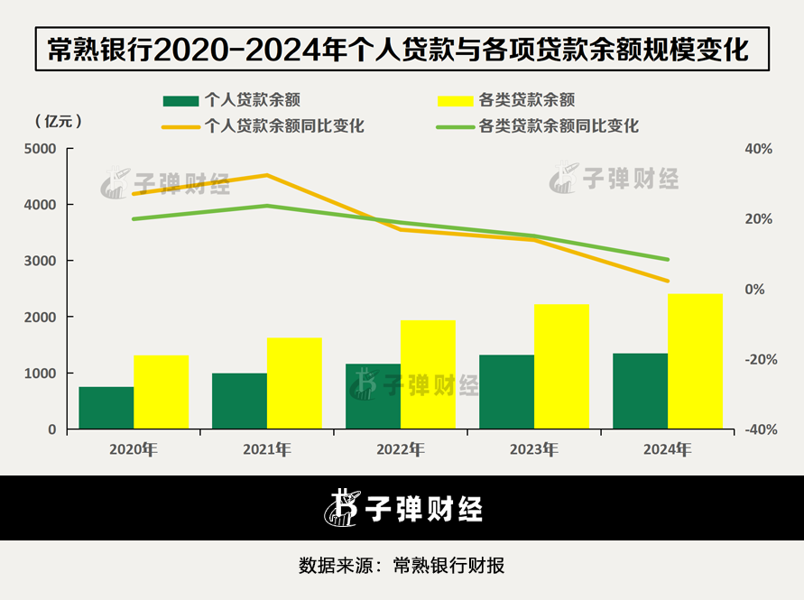 数据显示,常熟银行的个人贷款余额从2020年末的750.88亿元,增长至2024年末的1349.43亿元。