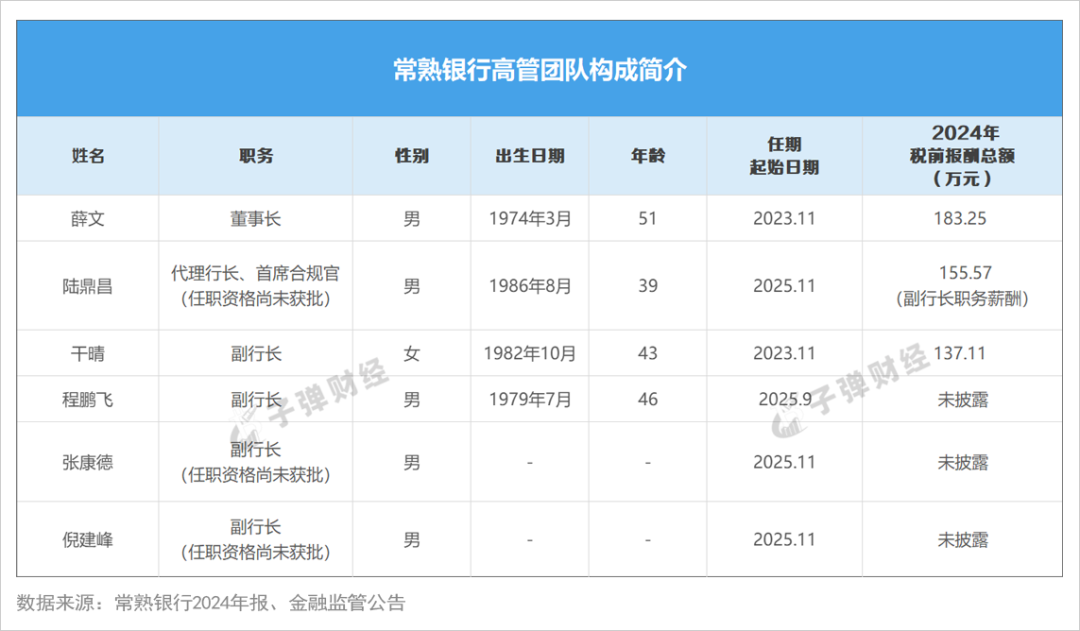 而常熟银行的前任行长包剑,在2023年11月出任行长时,当时也是最年轻的A股上市银行行长。在2025半年报中,常熟银行提出其管理层年轻化,平均年龄47岁,显著低于同业。