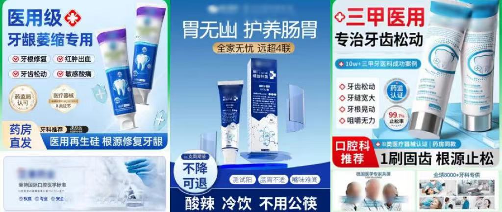部分企业利用消费者难以区分监管类别的弱点,将“消字号”或“械字号”产品重新包装为牙膏,以“医用级”“专业级”提升售价;也有品牌把普通妆字号牙膏渲染成“可吞咽”“可替代治疗”的安全品类。