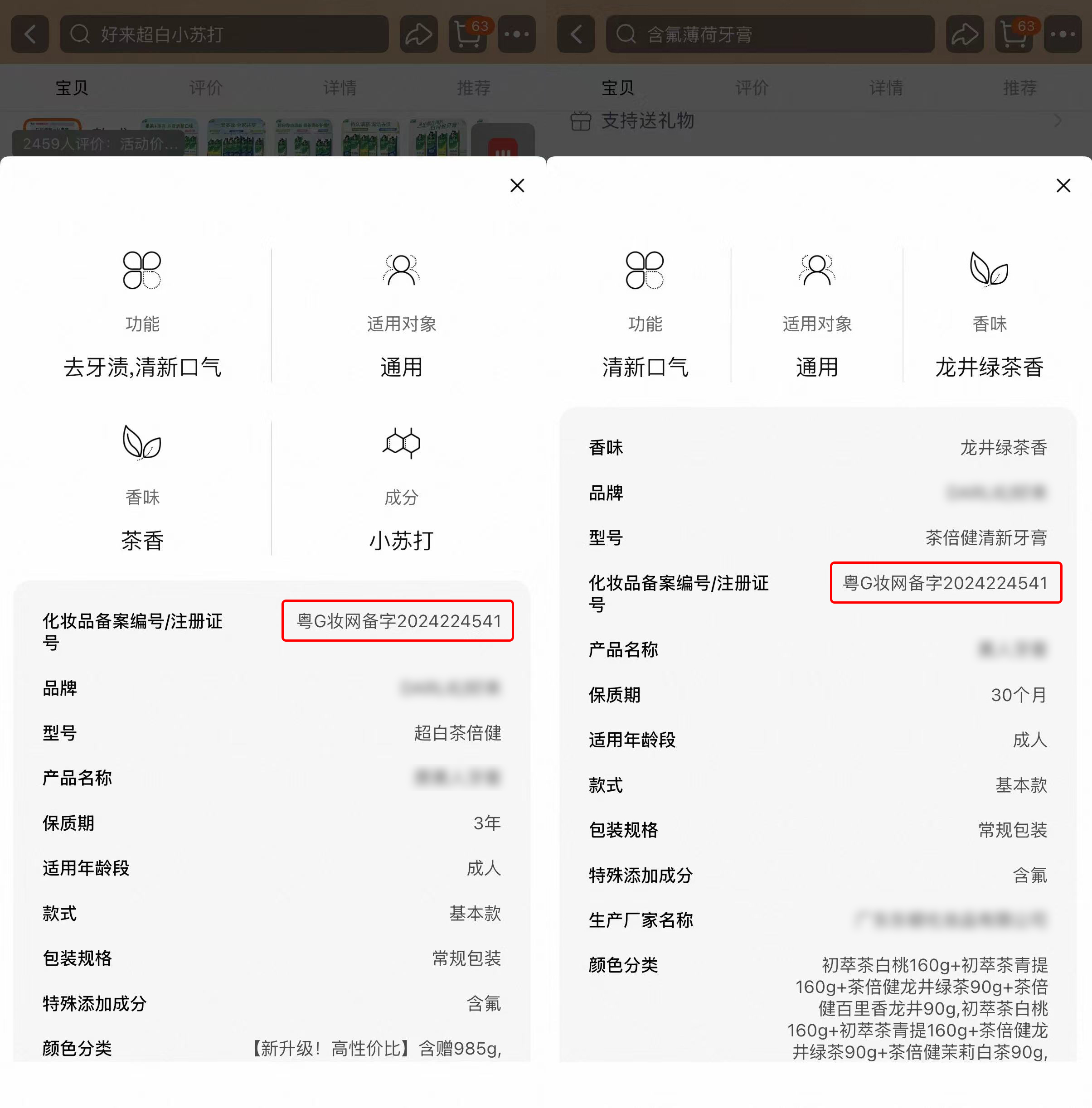同一个备案号下“孵化”数个产品,只需调整香型和包装,就能塑造N款新品。在牙膏品类中,“多品一号”的套证现象屡见不鲜,甚至在品类前十的Top级品牌中也有出现。这种做法不仅让备案制度失去了应有的准确性,也让消费者难以判断产品之间的本质差别。
