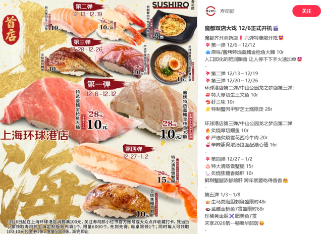 寿司郎上海门店即将推出的特价活动 | 来源:小红书