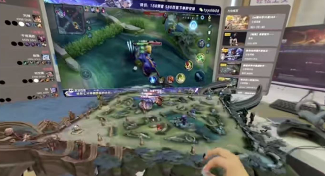 不过,在部分内容上,vivo Vison还是做出了一些新意。比如在“赛事直播”应用上,如果用户观看电竞比赛,屏幕上半区将会显示比赛画面,而下半区则会实时生成可操控的虚拟地图。