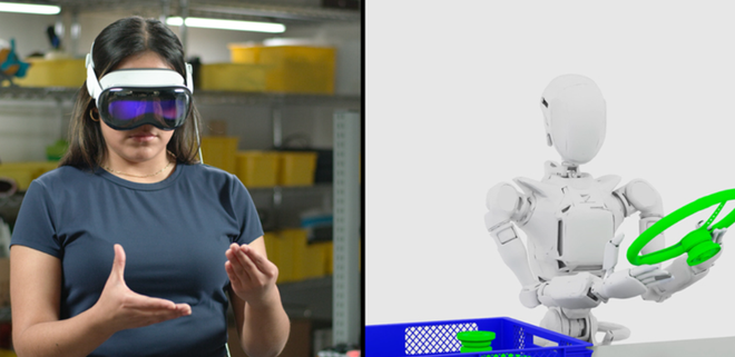 去年,英伟达在推出基于模仿学习的 Blueprint后,就有许多具身智能厂商使用Vision Pro去训练自家的人形机器人。