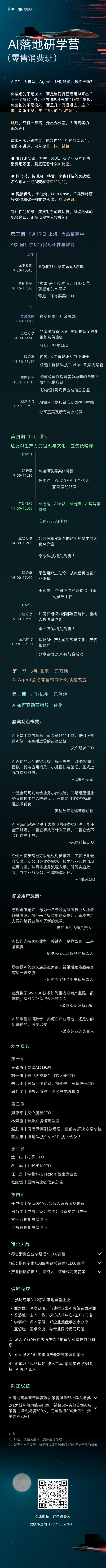 AI落地研学营旨在帮助零售消费企业构建从技术应用、供应链优化到组织变革的全景AI落地认知。