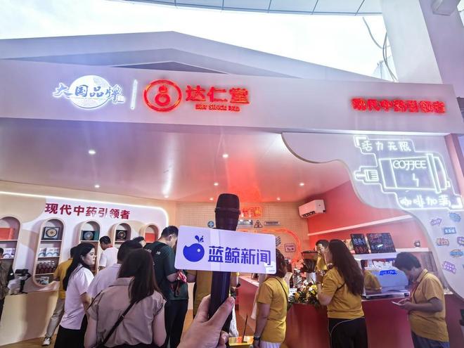 津药达仁堂展位采用"科技感+国风韵"的特装设计,并设置了很多互动体验区。观众可以展区一侧体验香囊DIY,根据自身需求,调配专属的养生香囊。"养生特调"区还展示了枣枣杞、楂楂啡、紫苏梅饮、雪梨百合饮、中式冰淇淋等中西合璧的创新饮品。