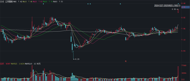 8月25日午间,江苏国泰(002091)一字涨停,股价报收8.36元/股。消息面上,公司昨晚宣布,公司于8月24日召开董事会,审议通过终止使用部分闲置自有资金人民币15亿元设立子公司开展证券投资。
