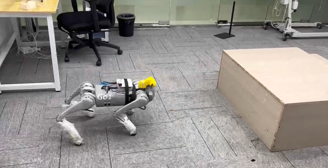 (上图为四足机器狗带感知越障,下图为人形机器人全身运动控制)
