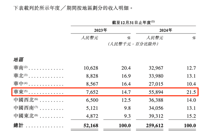 从区域表现来看,华东地区成为公司增长的核心引擎。