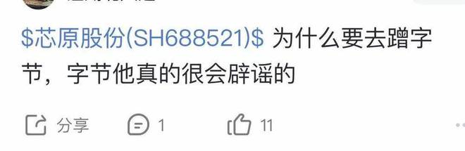 8月20日,业内消息传字节跳动与芯原股份有芯片相关合作,午后芯原股份达成20%涨停。但字节很快辟谣,于是尾盘2点55分芯原股份炸板,次日冲高回落,收盘跌去5个多点。在评论区,有用户“恨铁不成钢”,“为什么要去蹭字节,字节他真的很会辟谣的。”