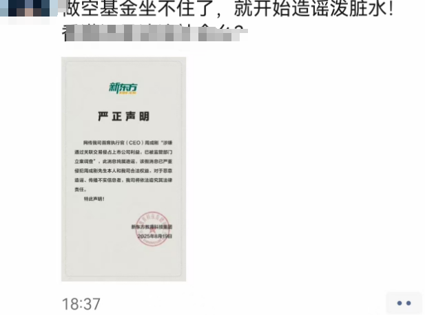 小作文的“选题设计”也颇有套路。以东方甄选为例:股价连涨,本就是市场热点;投资者关心能否从KOL带货转型为“线上山姆”;加上核心人员动向引人注目,于是造谣者选择对相对低调的高管下手,直击公司痛点,典型的“趁你病,要你命”。