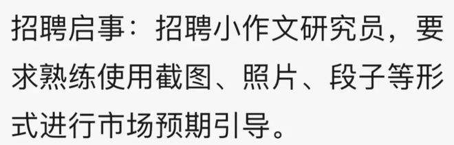 因此,小作文追求的不是严谨逻辑,而是传播速度与市场冲击力。