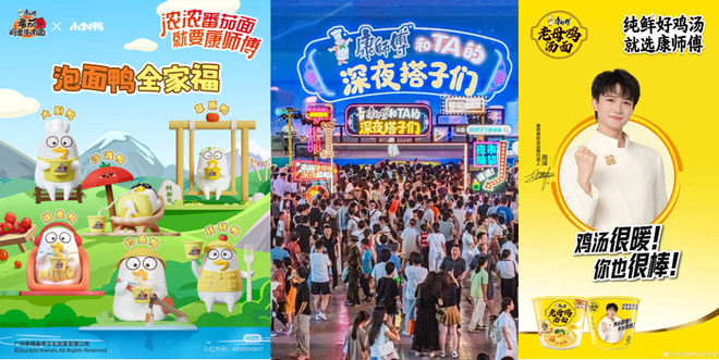 案例:番茄鸡蛋牛肉面×小刘鸭\“康师傅和TA的深夜搭子们”市集\周深代言老母鸡汤面