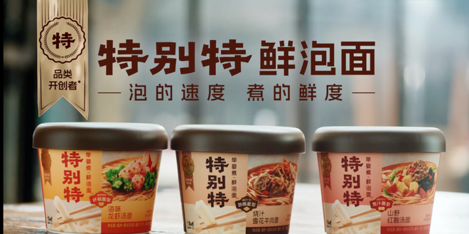 除了有航天技术的加持,康师傅通过“0油炸”专利技术、单篓水煮工艺、RP锁鲜技术等,在方便面的不同环节完成了技术赋能。品牌成立33周年之际,康师傅集中上新了多款产品,其中线上上新的“特别特”鲜泡面,采用了单篓水煮工艺和强风干燥锁鲜技术,可以泡出更劲道的口感,用“泡的速度,煮的鲜度”成功获得沙利文认证为【中国单篓水煮工艺鲜泡面开创者】。特别特鲜泡面的面世,建立了全新的品类标签,让泡面从速食向正餐转化,更具体面感和仪式感。正是因为这种技术革新与消费场景的精准洞察,才让这款产品在抖音超品日上线短短两天内销量就突破了5万单,这足以证明消费者对产品的期待和喜爱。