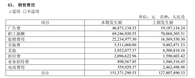 财报显示,在成本端,金种子酒上半年管理费用、研发费用同比分别减少33.14%、6.02%。不过,公司销售费用却同比增加18.44%至1.51亿元。其中,广告费一项达4687.11万元,同比增加2768.4万元。