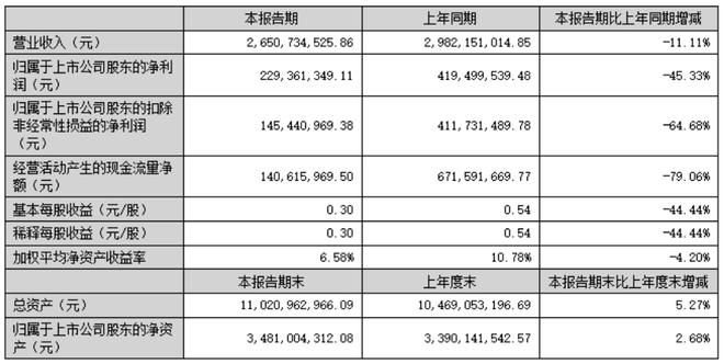 需要注意的是,上半年公司经营活动产生的现金流量净额1.41亿元,同比暴降79.06%,公司称主要系本期经营性利润减少及应收账款收回较上期减少。