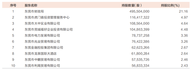 股权结构相对分散,一度是东莞银行上市进程的主要障碍。截至2024年末,东莞银行的股东总数为5190户,自然人股东占比超98%,第一大股东东莞市财政局持股仅21.16%,前十大股东合计持股不足60%,形成"无实际控制人"格局。
