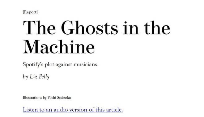 2025年1月,期刊《Harper's Magazine》就撰文披露了Spotify的“Perfect Fit Content”计划。据悉,这一计划开始于2017年,Spotify与多个供应商合作,供应商以极低的价格为Spotify提供多种类型的音乐,并且这些音乐的版权也永久转让给平台。随后,Spotify会制造幽灵音乐人来发行这些歌曲,并整合到那些收听量颇高的榜单上。