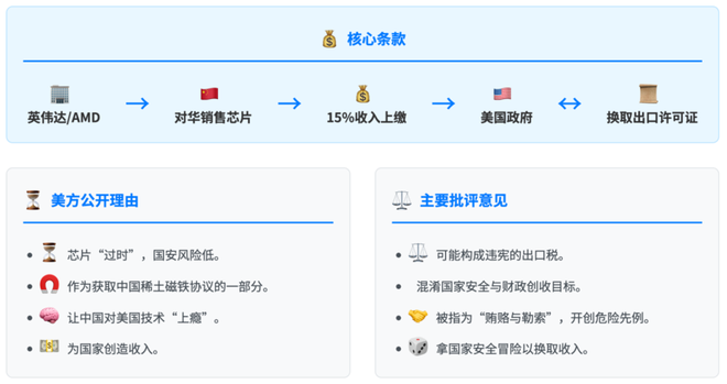 然而,出口管制体系的设计初衷是维护国家安全,而非充当财政部的提款机。批评者认为,这种功能混淆不仅可能不合法,而且极其危险,因为它将国家安全工具与财政工具画上了等号,为未来任何以“创收”为名的国家安全妥协打开了潘多拉的魔盒。