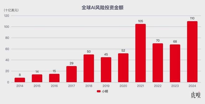 事实证明,付智踩中了一个新的时点。2024年是AI Agent爆发的前夜,人工智能的投资迅速翻倍,达到了1100亿美元,一些今天看来火爆的AI Agent赛道,在那个时候稍稍冒头,AI应用上的投入开始追上并超过了AI模型——这意味着在AI推理端的需求将会暴涨,这是弹性算力的潜在市场。