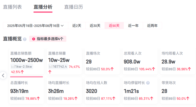 此外蓝鲸新闻通过第三方数据平台查询发现,近90天内影视飓风主账号抖音平台直播销售额在1000万-2500万之间。